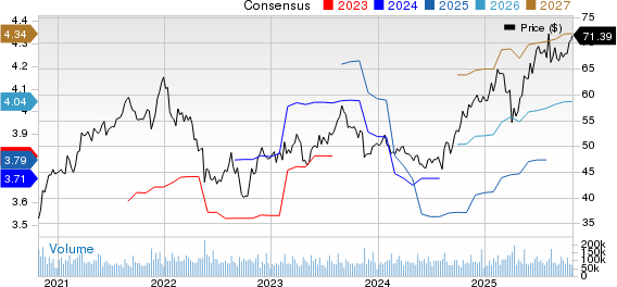 La marca de consenso para las ganancias del ejercicio fiscal 2026 de Cisco ha aumentado en un céntimo a 4,04 dólares por acción en los últimos 60 días, sugiriendo un crecimiento del 6% sobre la figura reportada del ejercicio fiscal 2025.